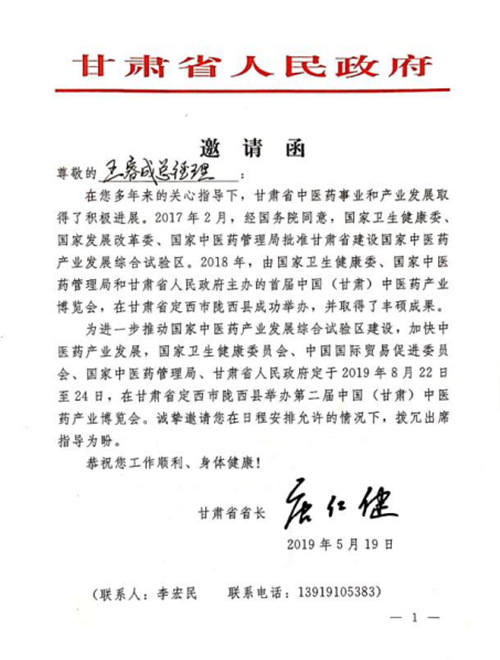2019年7月4日下午,甘肃省定西市各级领导莅临华体会(中国),在座谈会上,定西市人大常委副主任王成文给王睿成总经理亲手递交了甘肃省人民政府唐仁健省长亲笔签名的邀请函,诚挚邀请我司总经理王睿成参加于2019年8月22日至24日在甘肃省定西市陇西县举办的第二届中国(甘肃)中医药产业博览会。 甘肃中药材资源得天独厚,是全国重要的中药材主产区和道地药材生产地之一,素有“千年药乡”“天然药库”之称。紫光辰济药业将以药博会为契机,加强与中医药产业同仁的合作与交流,提升紫光辰济的品牌影响力,以实际行动进一步释放中医药产业潜力和活力,彰显中医药的多重价值,为推动健康中国建设、构建人类命运共同体作出新的更大贡献。 我司总经理王睿成对定西市政府人民政府各级领导的到来表示诚挚的欢迎,感谢甘肃省人民政府的邀请,并表示紫光辰济药业将联合宝鸡市中医药产业联合会各会员单位以最大的诚意和行动参加此次盛会,共同推进中医药产业的全面发展,预祝第二届中国(甘肃)中医药产业博览会圆满成功!
