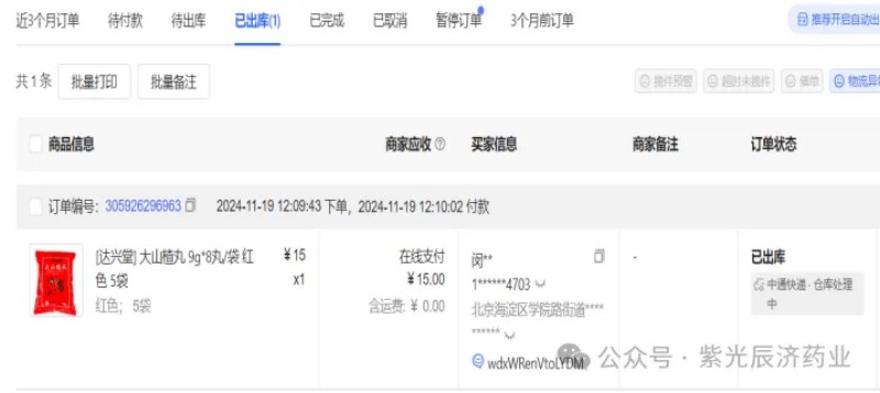 11月19日12时09分,一个值得铭记的历史时刻,随着北京用户的首单成功下单并发货,达兴堂大药房旗舰店在京东平台正式扬帆起航。历经两个月的精心筹备,这一刻的到来不仅标志着达兴堂电商战略的顺利落地,更开启了华体会(中国)医药电商领域的新征程。